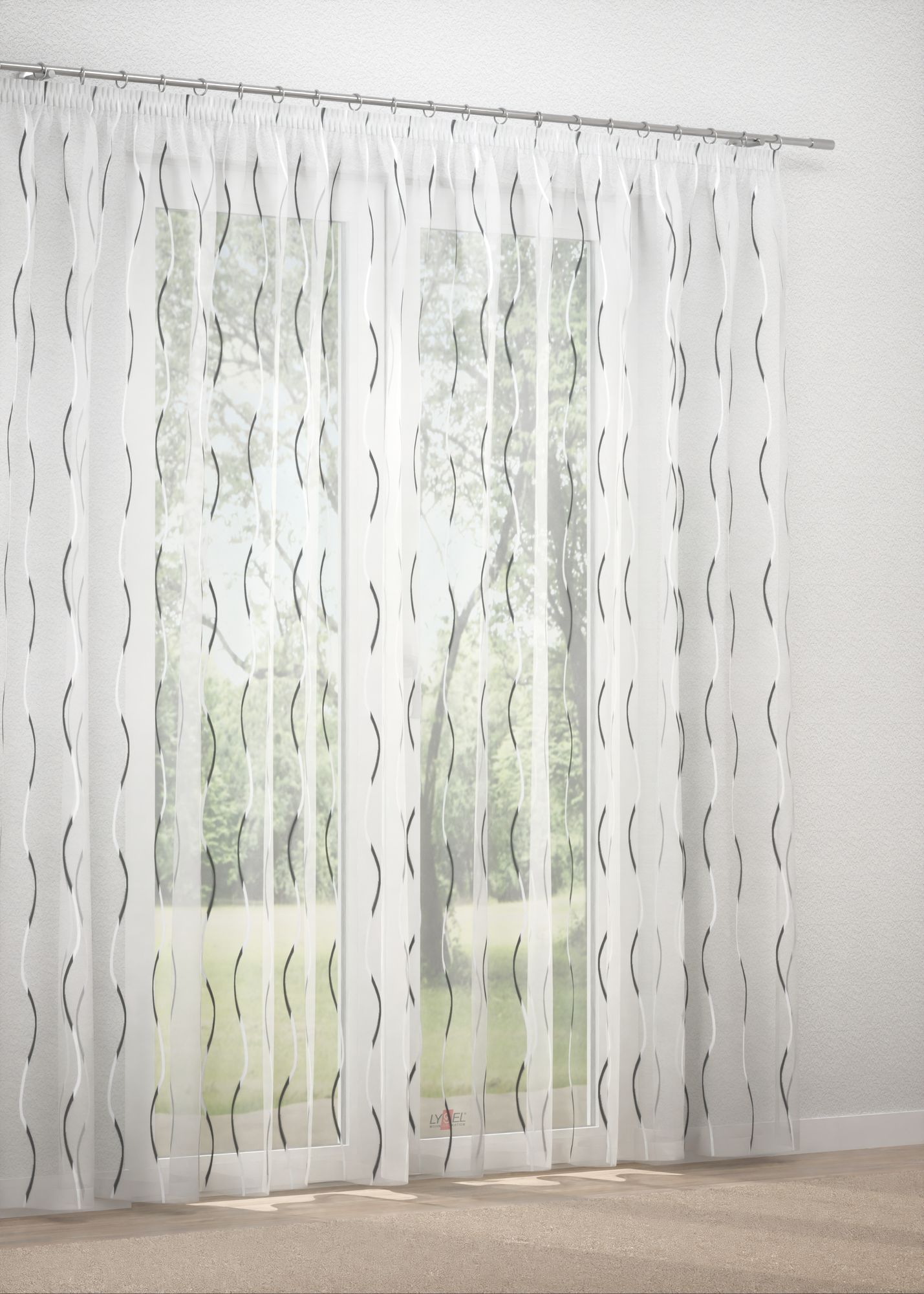 Mögen Sie es hell, freundlich und stilvoll, ist dieser Gardinenstoff genau das Richtige. Hingucker bei diesem Modell ist eine zweifarbige Wellenlinie, die sich sanft schimmernd vertikal durch die Stoffoberfläche zieht. Das moderne Muster in Scherli-Technik verbreitet ein vitales, ebenso elegantes Flair, das jedem Raum zu Gute kommt, egal, ob Sie den Behang als Scheibengardine in der Küche, Dekoschal im Schlafzimmer oder Raffrollo im Wohnzimmer einsetzen. Das eingearbeitete Bleiband sorgt überall für ein attraktives Erscheinungsbild. Durch die Transparenz des Polyesters bleiben Zimmer hell und freundlich, der Blick nach draußen stets gewahrt, sodass Sie sich ein Stück Natur und Freiheit in Ihre vier Wände holen können. Alles in allem ein Fensterschmuck mit dem gewissen Etwas, der pflegeleicht ist und bei 30°C schonend mit der Maschine gewaschen werden kann.