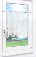Elegant und verspielt zugleich wirkt diese Scheibengardine mit abwechslungsreichen Designelementen und floralen Akzenten. Die Gestaltung in mildem Rohweiß trägt zur stilvollen und leichten Erscheinung der transparenten Bistrogardine bei. Durch die helle Optik und den durchsichtigen Stoff lässt die Scheibengardine das Ambiente weiterhin freundlich und einladend wirken. Die weitere Einrichtung und Dekoration können Sie ganz nach Belieben wählen, die Umrahmung mit ausdrucksstarken Farben, Mustern und Strukturen lässt die Scheibengardine noch frischer erscheinen.
