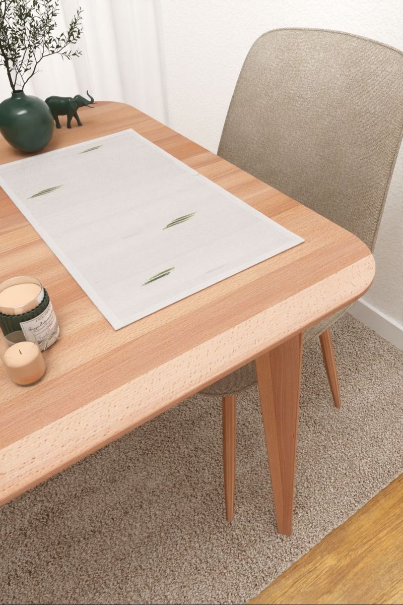 Dieser weiße Stoff ist mit einem zarten Muster aus gleichmäßig angeordneten kleinen Pinselstrichen verziert, die sich in unterschiedlichen Grüntönen präsentieren und zusammen mit dem frischen Weiß eine angenehme Natürlichkeit in den Raum bringen. Helles und rötliches Holz, viele Accessoires aus Wolle, Leinen und Rattan passen perfekt dazu. Mit Zimmerpflanzen und weiteren Grüntönen lassen Sie das Ambiente aufleben. Für Farbakzente bieten sich satte Orangetöne an.